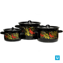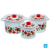 набор 17 белый с деколью на крышке Рамо кастрюли цилиндр.: 3,5л, 5,5л и 8л