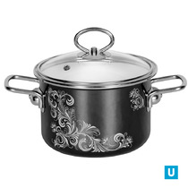Кастрюля цилиндрическая 2 л декор с пластм. кнопкой, С1610.3