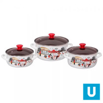 набор Белый Мрамор-1-Элит (белая), арт.(кастрюли цил. с пл. дном 1,9л,2,5л,3,7л)
