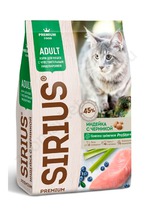 Корм для кошек Sirius при чувствительном пищеварении с индейкой и черникой 1,5кг
