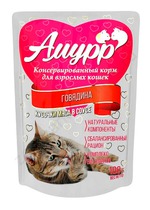 Влажный корм для кошек. Состав: Мясо и субпродукты (говядина не менее 35%), злаки, таурин, минеральные вещества, витамины.