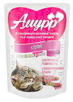 Влажный корм для кошек. Состав: Мясо и субпродукты (курица не менее 35%), злаки, таурин, минеральные вещества, витамины.