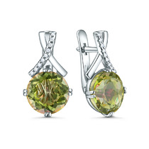 Серьги из серебра с жёлто-зелёным горным хрусталём и фианитами родированные 3112