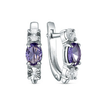 Серьги из серебра с гидротермальным александритом и фианитами родированные 925 п