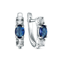 Серьги из золочёного серебра с натуральным сапфиром и фианитами 925 пробы С-215з