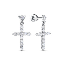 Серьги из серебра с крестами и фианитами родированные 925 пробы 11-1971р