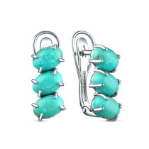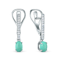 Серьги из серебра с натуральной бирюзой и фианитами родированные 925 пробы 04-20