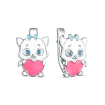Серьги детские из серебра с эмалью и фианитами родированные - Кошечки 925 пробы