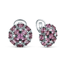 Серьги из серебра с гранатом и чёрной шпинелью родированные 925 пробы 2-534рч404