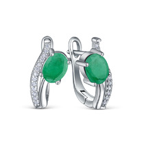 Серьги из серебра с изумрудом и кубическим цирконием родированные 925 пробы GTE-