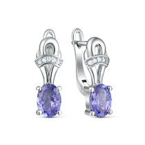 Серьги из серебра с танзанитом и кубическим цирконием родированные 925 пробы GTE