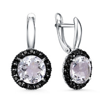 Серьги из серебра с натуральным горным хрусталём и чёрной шпинелью родированные