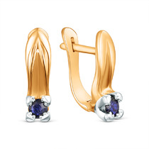 Серьги из золочёного серебра с сапфиром и родированием 925 пробы п2-562зр408н