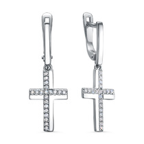 Серьги из серебра с фианитами родированные - Кресты 925 пробы С-4398-Р
