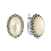 Серьги из чернёного серебра с натуральным перламутром и марказитами 925 пробы HE