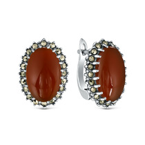 Серьги из чернёного серебра с агатом и марказитами 925 пробы HR0335-RD-LK