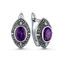 Серьги из чернёного серебра с натуральным аметистом и марказитами 925 пробы HE17