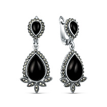 Серьги из чернёного серебра с натуральным ониксом и марказитами 925 пробы HE1105