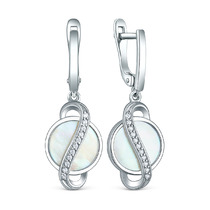 Серьги из серебра с натуральным перламутром и фианитами родированные 925 пробы С