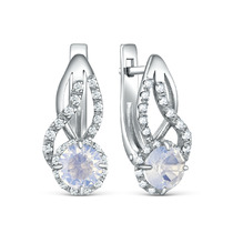 Серьги из серебра с плавленым кварцем цвета лунный камень и фианитами родированн