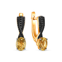 Серьги из золочёного серебра с цитрином, чёрной шпинелью и родированием 925 проб