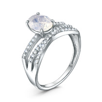 Кольцо из серебра с плавленым кварцем цвета лунный камень и фианитами родированн