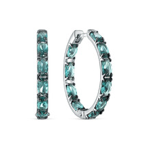 Серьги из серебра с искусственным кварцем цвета параиба и чёрным родием родирова