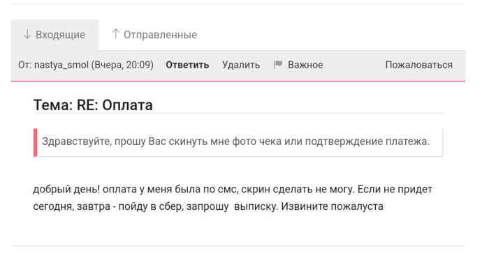 26.10 деньги так и не пришли пишу ей в ЛС