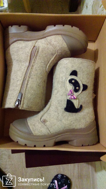 Забрала сегодня валенки с котенком - классные, очень понравились. Юля, Спасибо большое, благодаря твоим закупкам дочь тепло и красиво одета- обута на зиму.