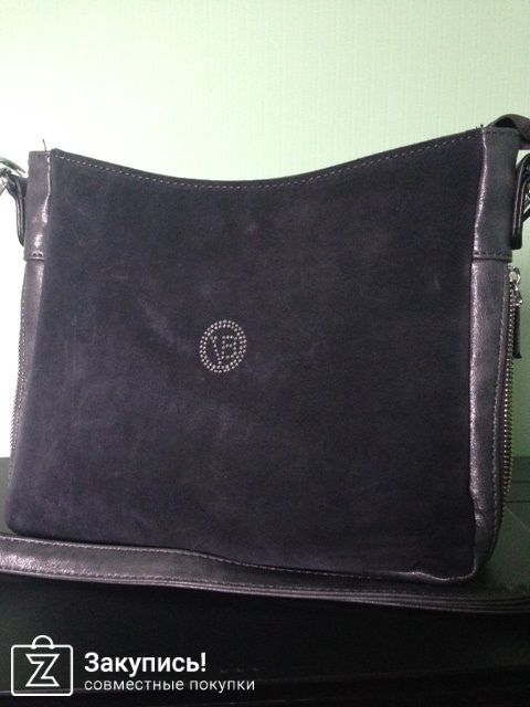Еще одна черненькая сумочка простенькая, бренд неизвестен. Компактная, мягкая, с двумя ремешками, по бокам дополнительные кармашки на замочках, внутри материал попроще. Но за такую цену просто миленькая)