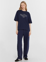 Брюки для спорта и отдыха широкие из футера 3х нитки с хлопком в составе. Притачной пояс на внутренней резинке. Боковые карманы с отрезным бочком, принт.