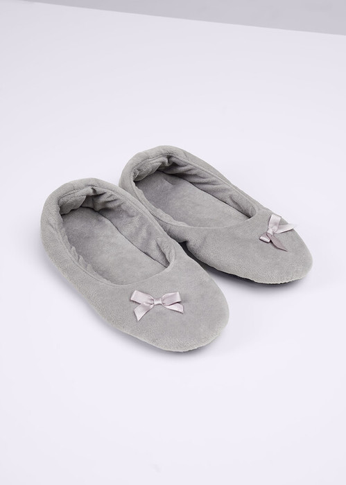Домашние туфли-балетки из велюра. Декорированы атласным бантом.