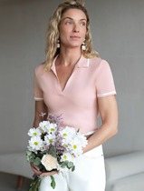 09.04 Vilatte Джемпер с воротником-поло с коротким рукавом тонкой вязки из виск