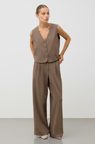 Ультрамодные женские брюки полной длины из ткани. Силуэт прямой, свободный. Пояс с эластичной тесьмой на задней части. На брюках заутюжены модные стрелки. Есть боковые карманы. Рекомендуем!