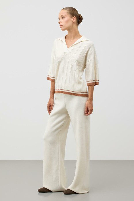 Джемер-поло из высококачественного австралийского мериноса. Спущенное плечо и свободный крой делают джемпер идеальным для повседневной носки. Состав является гипоаллергенным и способствует отличному сохранению формы изделия.