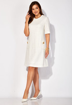 Летнее трикотажное платье из 100% хлопка с легкой текстурой пике, дарит невероятное ощущение комфорта и легкости.  Спущенное плечо и карманы в боковых швах добавляют изделию спортивный образ.