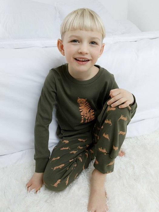 22.04 Crockid пижама дет К 1541/хаки,полосатые тигры