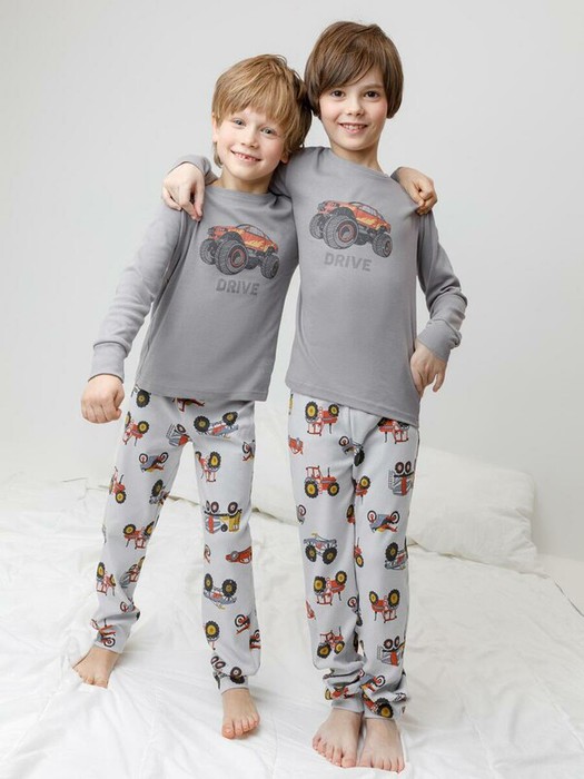 Трикотажная пижама из натурального хлопка. Джемпер с длинными рукавами с эластичными манжетами. У брюк эластичный пояс на резинке. Оригинальная набивка и принт выполнены из стойких, гипоаллергенных текстильных красителей. Пижама сохраняет цвет и форму после многократных стирок. Все трикотажные полотна производятся в соответствии с нормами Швейцарского сертификата ЭкоТекс.