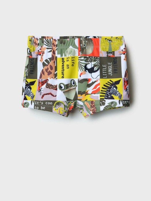 Плавки-шорты детские средней длины, прилегающего силуэта для мальчика. Изготовлены из эластичного трикотажа, с подкладкой для большего комфорта. Ткань устойчива к солнцу и солёной воде, благодаря UF-защите сохраняет насыщенность цвета и структуру волокон. В поясе — удобная резинка и регулируемый шнурок.