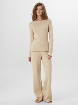 Брюки женские из трикотажного полотна «кулирка» с набивным рисунком, прямого кроя слегка зауженные книзу, с карманами в боковых швах, на притачном поясе с эластичной тесьмой внутри.
