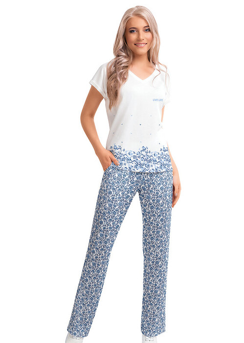 09.04 Clever Брюки женские для дома CLE LTR29-752/2 молочный/св.голубой