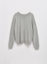 Вязаный джемпер из акриловой пряжи, переплетения гладь. Втачной длинный рукав. По низу рукава и изделия манжеты. Округлая горловина с бейкой. По переду косы.
