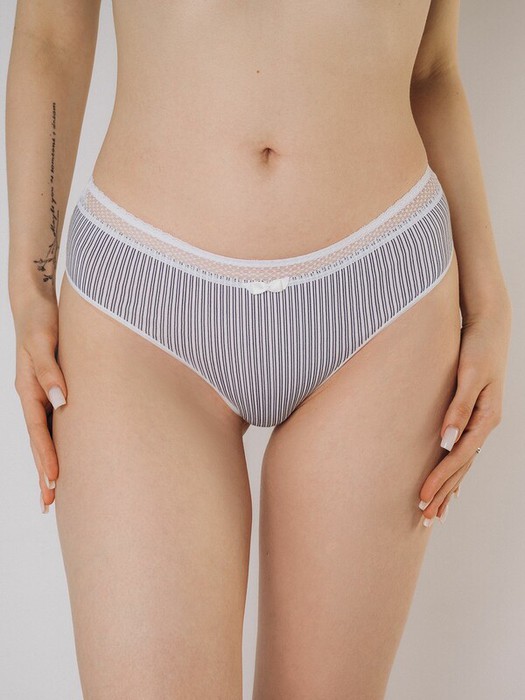 Резинка обрамлена кружевом, задняя часть также выполнена в кружевной ткани.