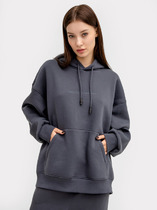 Рукава втачные длинные с отрезными манжетами из рибаны. Линия плеча спущена, пройма углублена. Плечевые швы смещены в сторону переда. По переду накладной карман кенгуру.