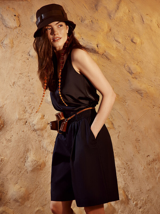 Элегантная блуза на узких бретелях – идеальный выбор для создания стильного и изысканного образа. Прямой, свободный силуэт и V-образная горловина придают модели утончённость и шарм. Перед и спинка на подкладке из основного материала обеспечивают комфорт и дополнительную плотность, а нижние срезы аккуратно обработаны швом вподгибку, что придаёт изделию завершённый вид. Блуза выполнена из прочного и приятного к телу струящегося материала, который красиво подчеркивает изящные линии фигуры. Этот материал не только отлично смотрится, но и дарит ощущение нежности и лёгкости при каждом движении. Такая блуза станет отличным дополнением вашего гардероба, подходящим как для повседневных образов, так и для особых случаев.