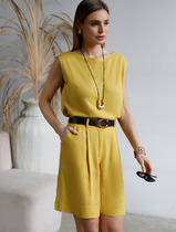 09.04 Vilatte Шорты изо льна с вискозой D28.052 горчичный