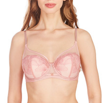 Бюстгальтер с формованными чашками balconette с push-up во всех размерах, на каркасах и с боковыми корсетными вставками , выполнен из сетки с вышивкой "цветочки" и тонкого полотна. Бретели регулируемые, не съемные. Нежная роза украшает серединку переда. Застежка на 2 крючка и 3 ряда петель.