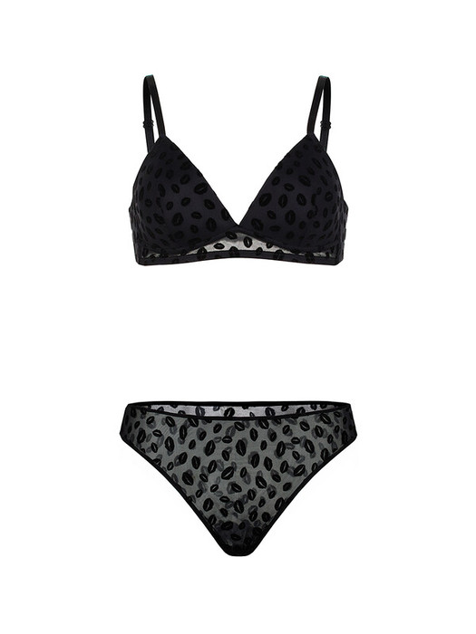 Бюстгалтер Padded Triangle  выполнен из мягкой сетки с флок-принтом "поцелуй" на формованной черной чашке triangle  без push-up, без каркасов и без боковых корсетных вставок..Бретели регулируются по длине и не отстегиватся. Ширина бретелей на объемы 70, 75 и 80 см с чашками А,В,С - 10мм. Застежка на два крючка и три ряда петель