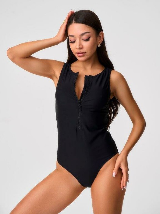 Слитный купальник с чашкой soft bra на подкладе. Без каркасов и боковых корсетных вставок. С молнией на передней части купальника. Тонкие резинки, подгиб и плоский шов по вырезу  горловины, рукам и ножкам.