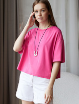 14.04 Vilatte Укороченная футболка силуэта овер-сайз D49.090 розовая фуксия